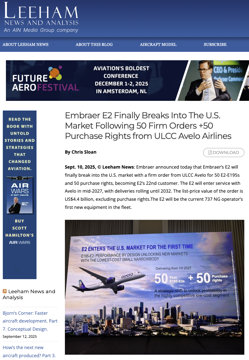 Embraer E2 Finally Breaks Into The U.S. Market Following 50 Firm Orders + 50 Purchase Rights from ULCC Avelo Airlines