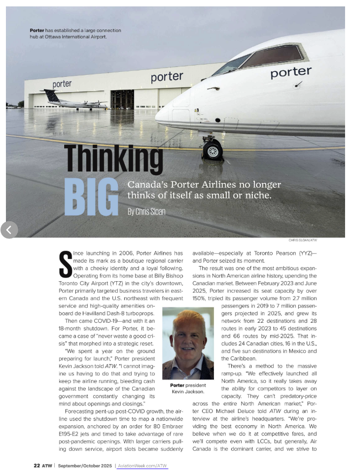 I joined ATW Editor-in-Chief Karen Walker on Aviation Week Network’s Window Seat Podcast to explore two very different airline strategies playing out in North America right now. Drawing on two in-depth stories I’ve reported—one on JetBlue (in this month’s ATW) and one on Porter Airlines (coming next month)—we compared how each airline is navigating a pivotal moment: JetBlue is in full turnaround mode, pulling back in some markets as it works to restore profitability after a challenging period. Porter, by contrast, is scaling up aggressively across Canada and into the U.S., with a brand-new fleet and an ambitious growth plan. Both face fierce competition and shifting market dynamics—but their paths forward couldn’t look more different.