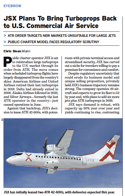 JSX Plans To Bring Large Turboprops Back to U.S. Skies